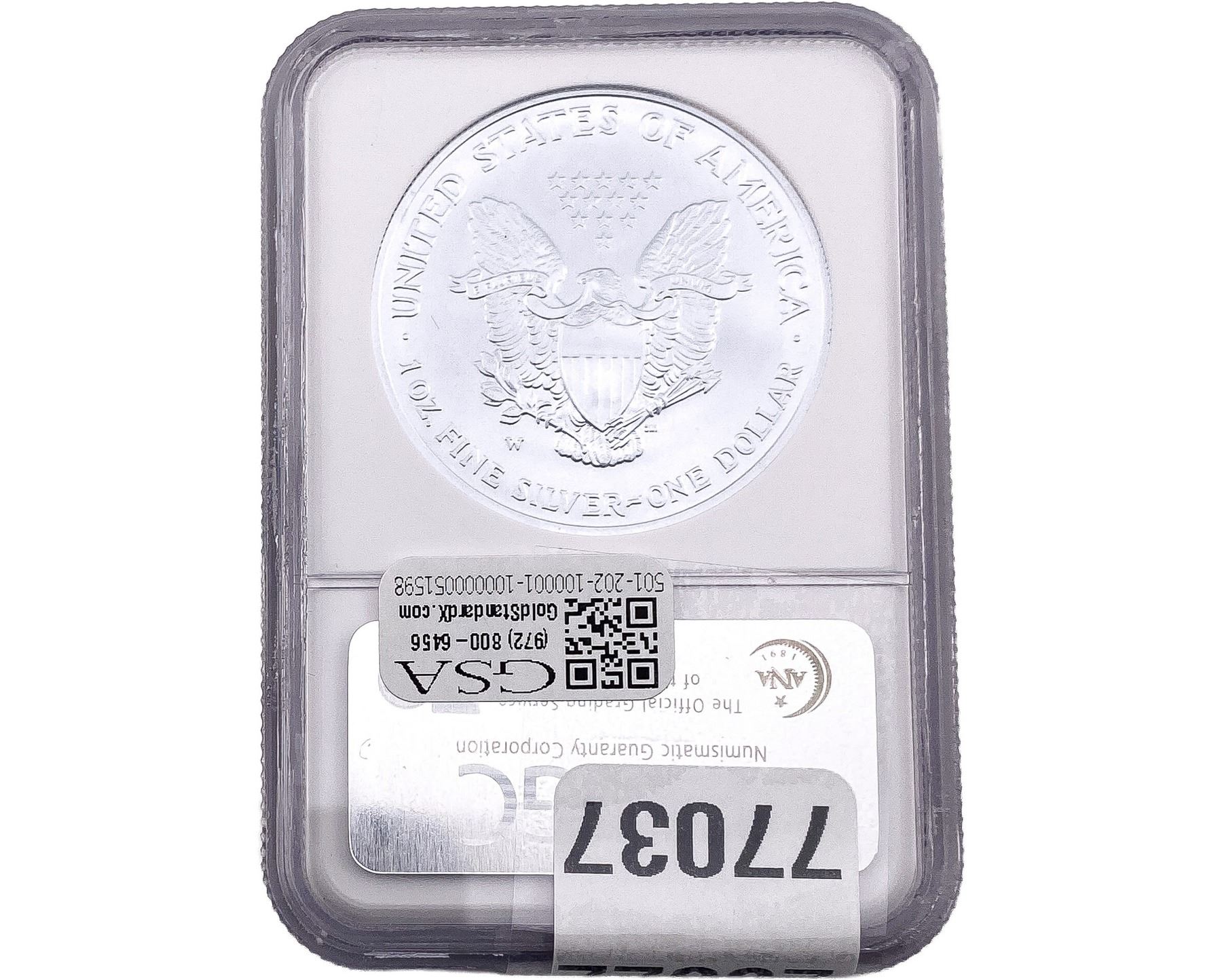 e. Coins sold referencing a third-party grading service are sold “AS IS” without any express or implied warranty, except for a guarantee by GSA that they are genuine. Removal or alteration of the holder, voids all of Bidder’s claims concerning that Product. Certain warranties may be available from the grading services and Bidders are referred to them for further details: Numismatic Guaranty Corporation (NGC), PO Box 4776, Sarasota, FL 34230, www.ngccoin.com/services/writtenguarantee.asp; Professional Coin Grading Services (PCGS), PO Box 9458, Newport Beach, CA 92658, www.pcgs.com/guarantee.html; ANACS, 6555 S. Kenton St., Ste. 303, Englewood, CO 80111; and Independent Coin Grading Co. (ICG), 7901 East Bellview, Ave., Suite 50, Englewood, CO 80111.