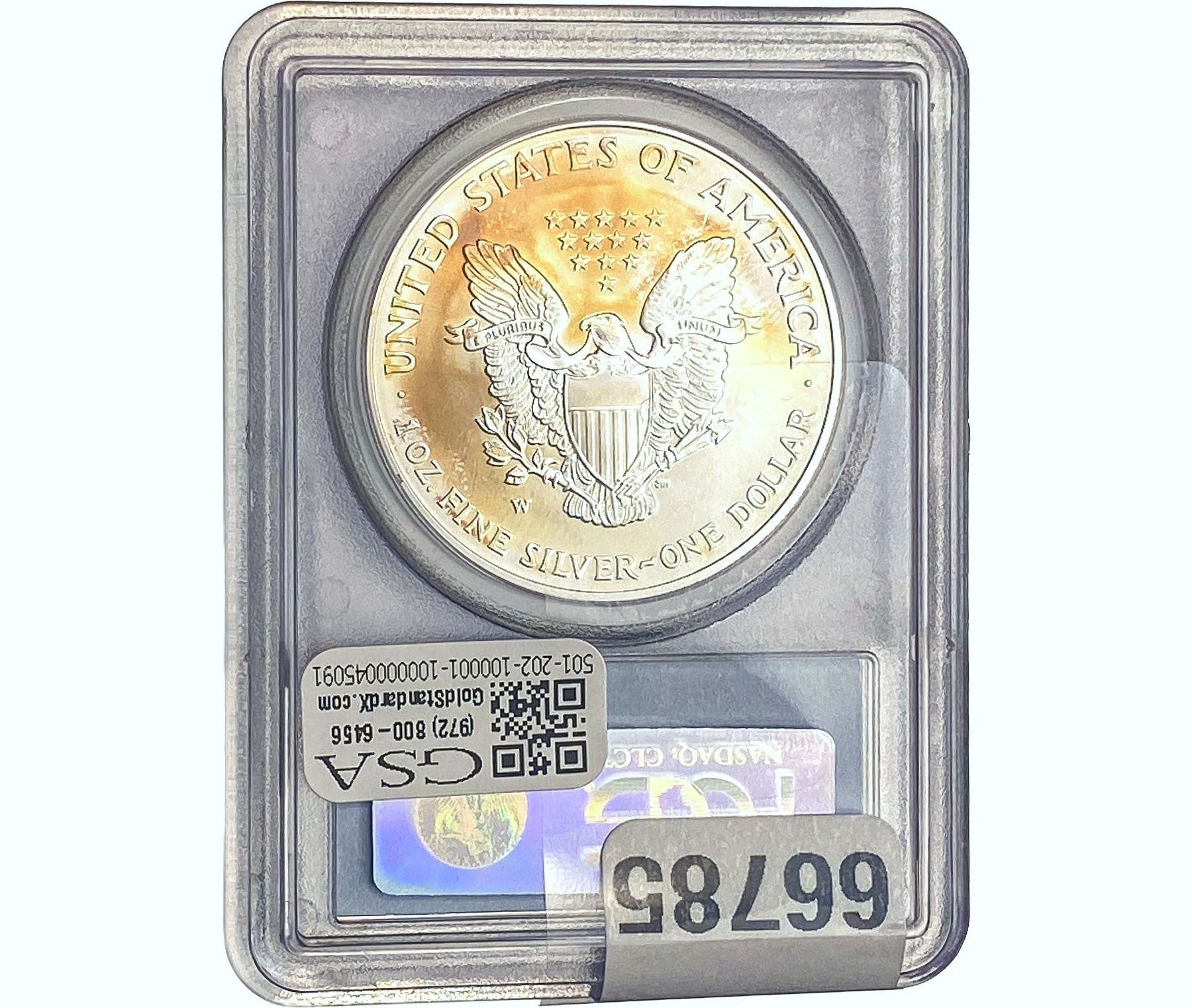 e. Coins sold referencing a third-party grading service are sold “AS IS” without any express or implied warranty, except for a guarantee by GSA that they are genuine. Removal or alteration of the holder, voids all of Bidder’s claims concerning that Product. Certain warranties may be available from the grading services and Bidders are referred to them for further details: Numismatic Guaranty Corporation (NGC), PO Box 4776, Sarasota, FL 34230, www.ngccoin.com/services/writtenguarantee.asp; Professional Coin Grading Services (PCGS), PO Box 9458, Newport Beach, CA 92658, www.pcgs.com/guarantee.html; ANACS, 6555 S. Kenton St., Ste. 303, Englewood, CO 80111; and Independent Coin Grading Co. (ICG), 7901 East Bellview, Ave., Suite 50, Englewood, CO 80111.