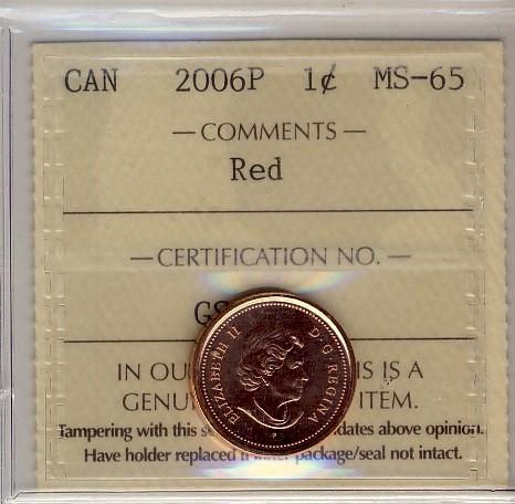 2006P 1¢ ICCS MS65RD. A spectacular example in MS65.