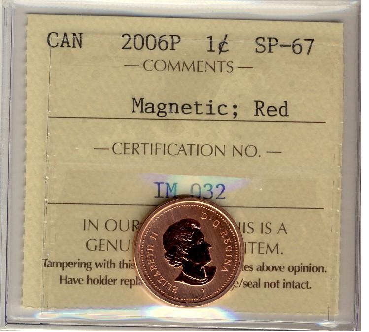2006P 1¢ Magnetic ICCS SP67RD.