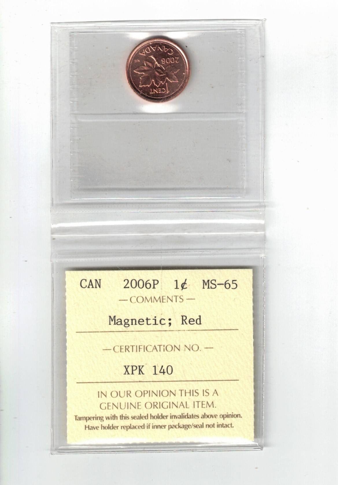 2006P Canada 1¢; Red; Magnetic, Certified ICCS MS65