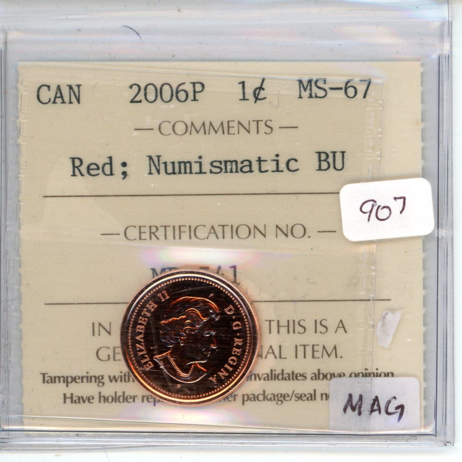 2006P Graded Canadian Penny - MS-67: Red; Numismatic BU