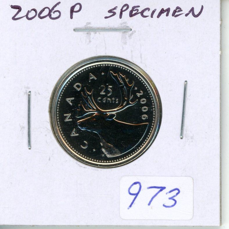 2006P Specimen 25 Cents. The special finish on the coin is a three-fold combination of brilliant and frosted relief on a lined finish background.
