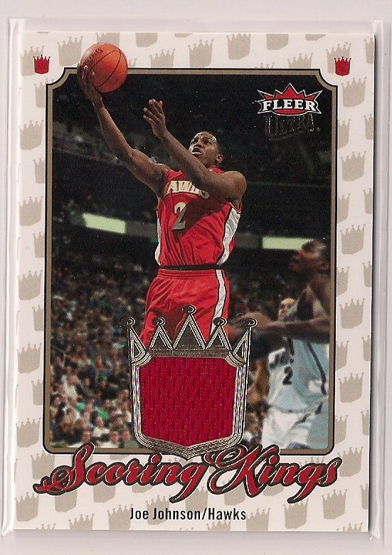 2007-08 Fleer Ultra Scoring Kings Joe Johnson Game-Used Material Insert Card. This Insert features a Solid Red piece of Game-Used Material. Card is Near Mint.