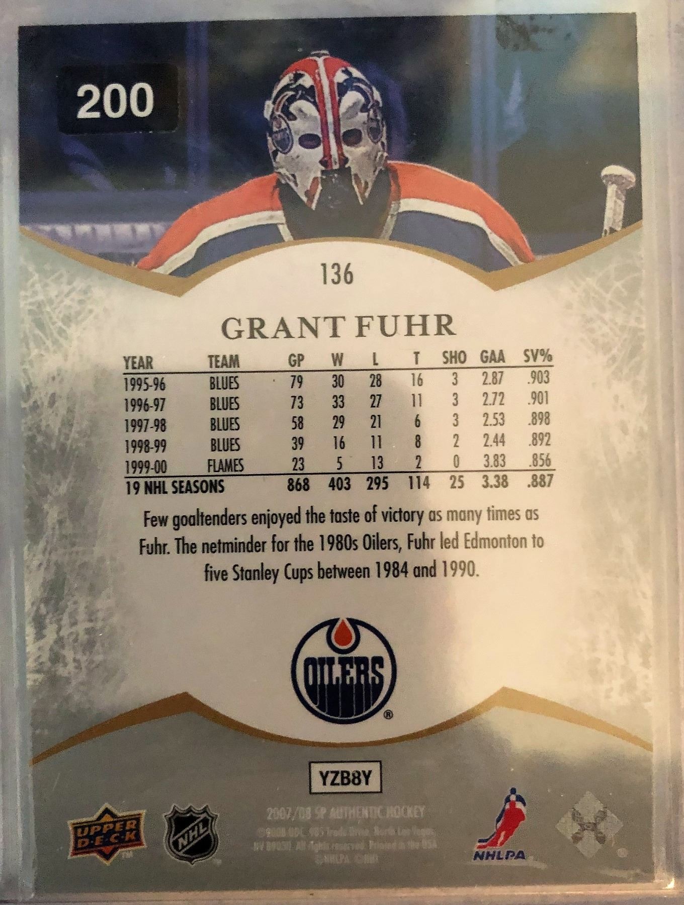 2007-08 SP Authentic Grant Fuhr #136 Serial #1859/1999