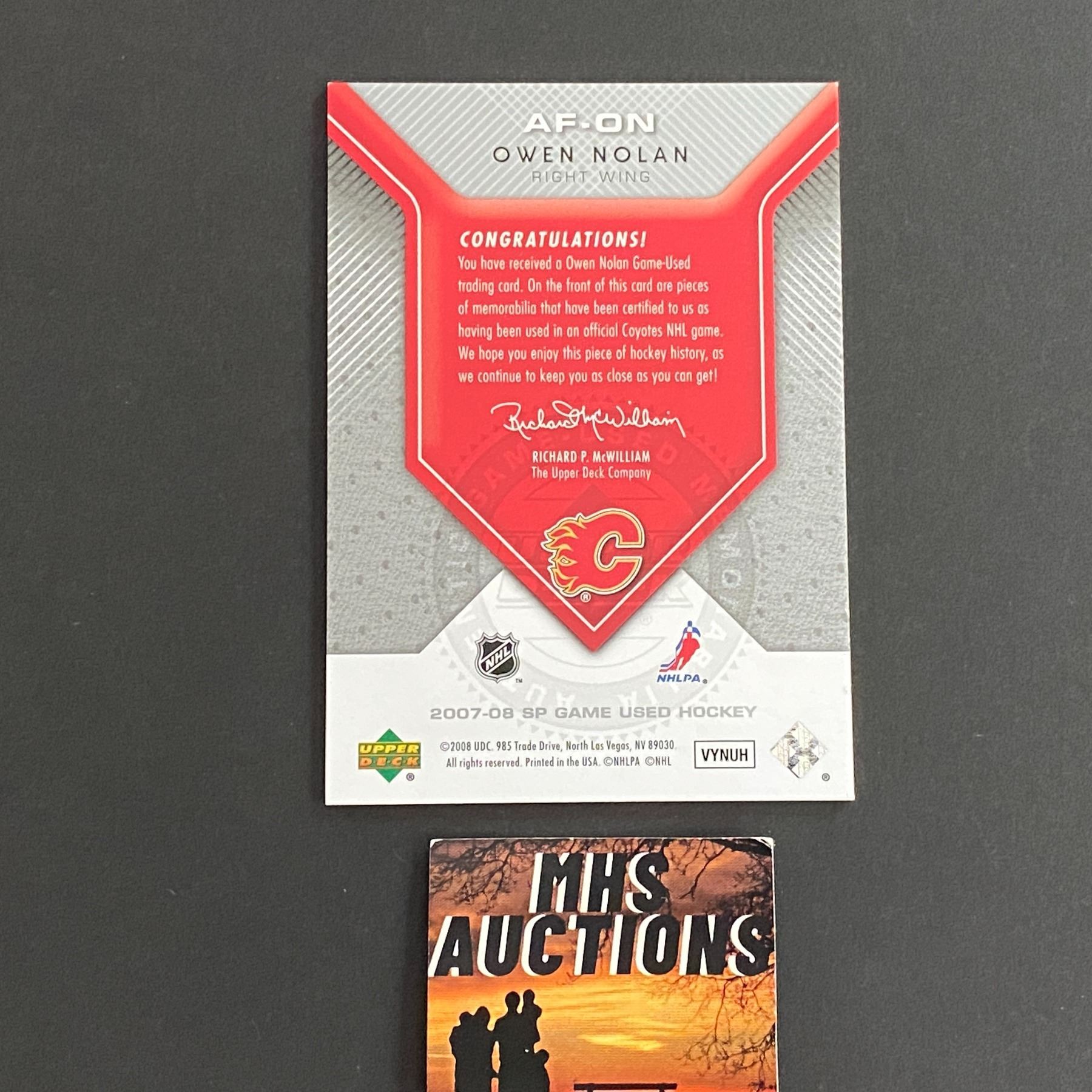 2007-08 SP GAME USED OWEN NOLAN DUAL JERSEY CARD