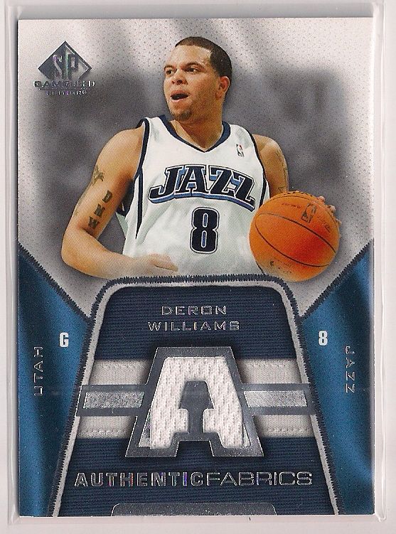 2007-08 SP Game-Used Edition Authentic Fabrics Deron Williams Game-Used Material Insert Card. This Insert features a Solid White piece of Game-Used Material. Card is Near Mint.