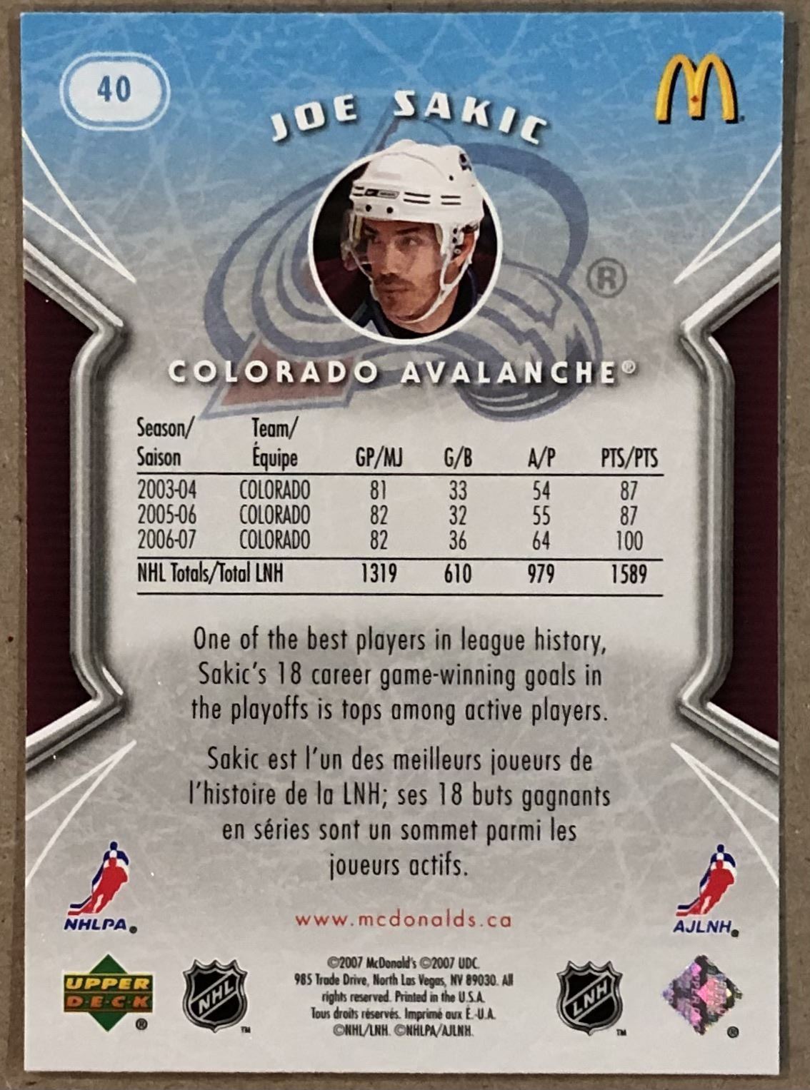 McDonald's #40 NHL, hockey, UD, regional, hall of fame