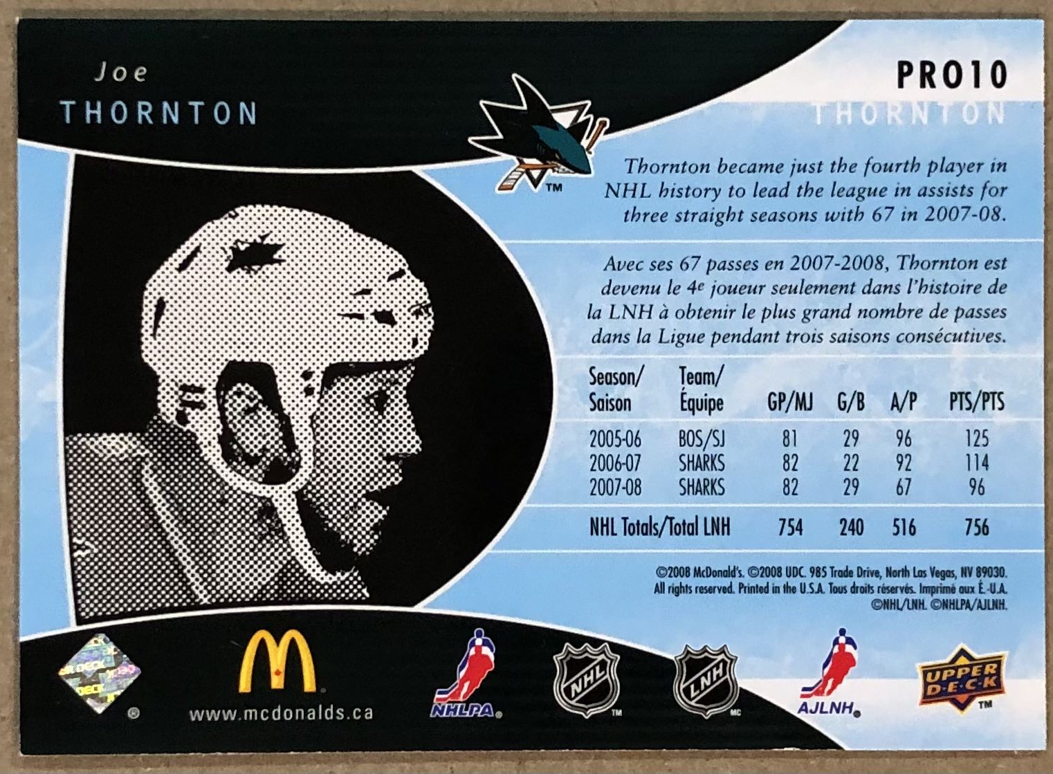 McDonald's #PRO10 NHL, hockey, UD, regional, hall of fame
