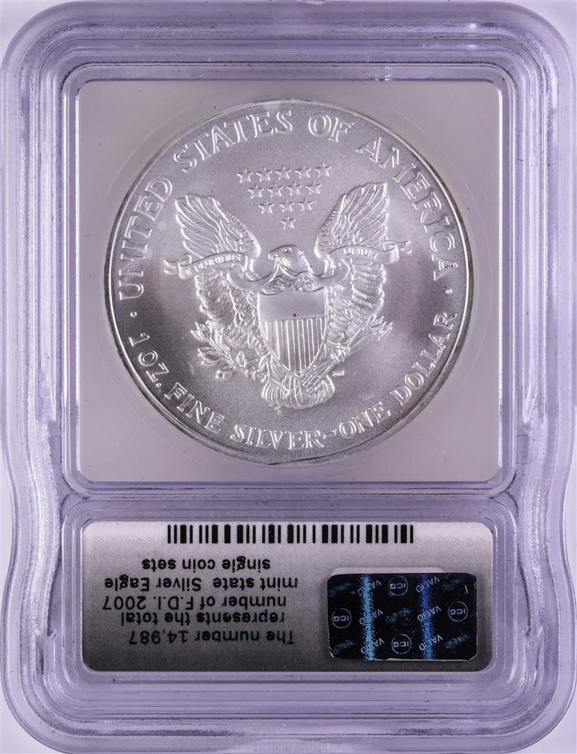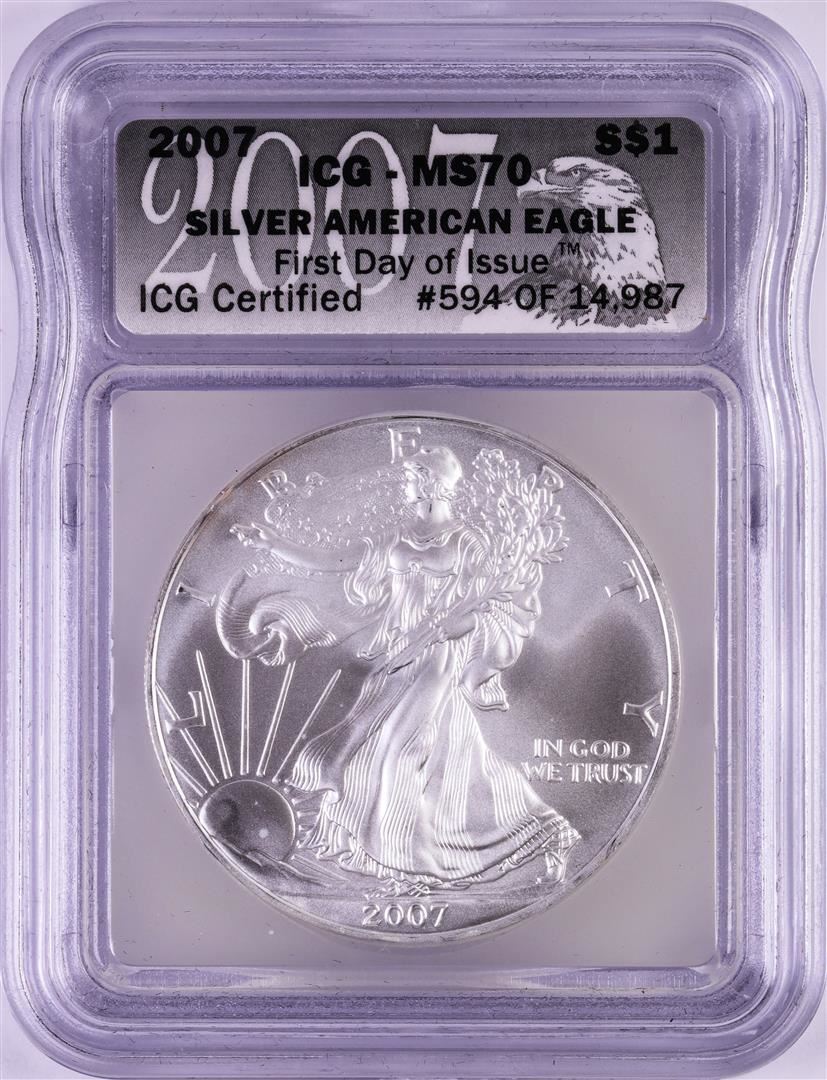 2007 $1 American Silver Eagle Coin ICG MS70 First Day of Issue