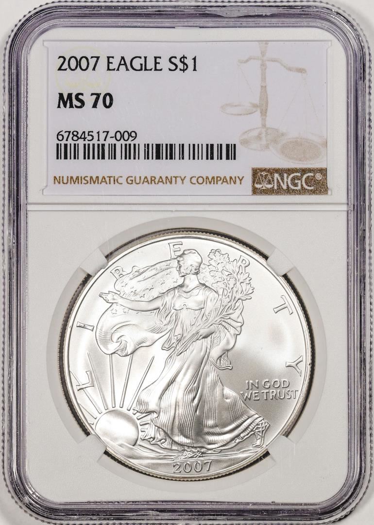 One 2007 $1 American Silver Eagle Coin NGC MS70. NGC Certified.