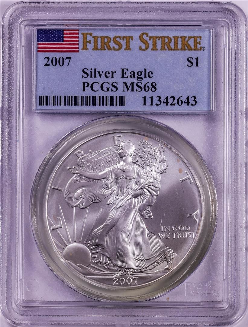 One 2007 $1 American Silver Eagle Coin PCGS MS68 First Strike. PCGS Graded.