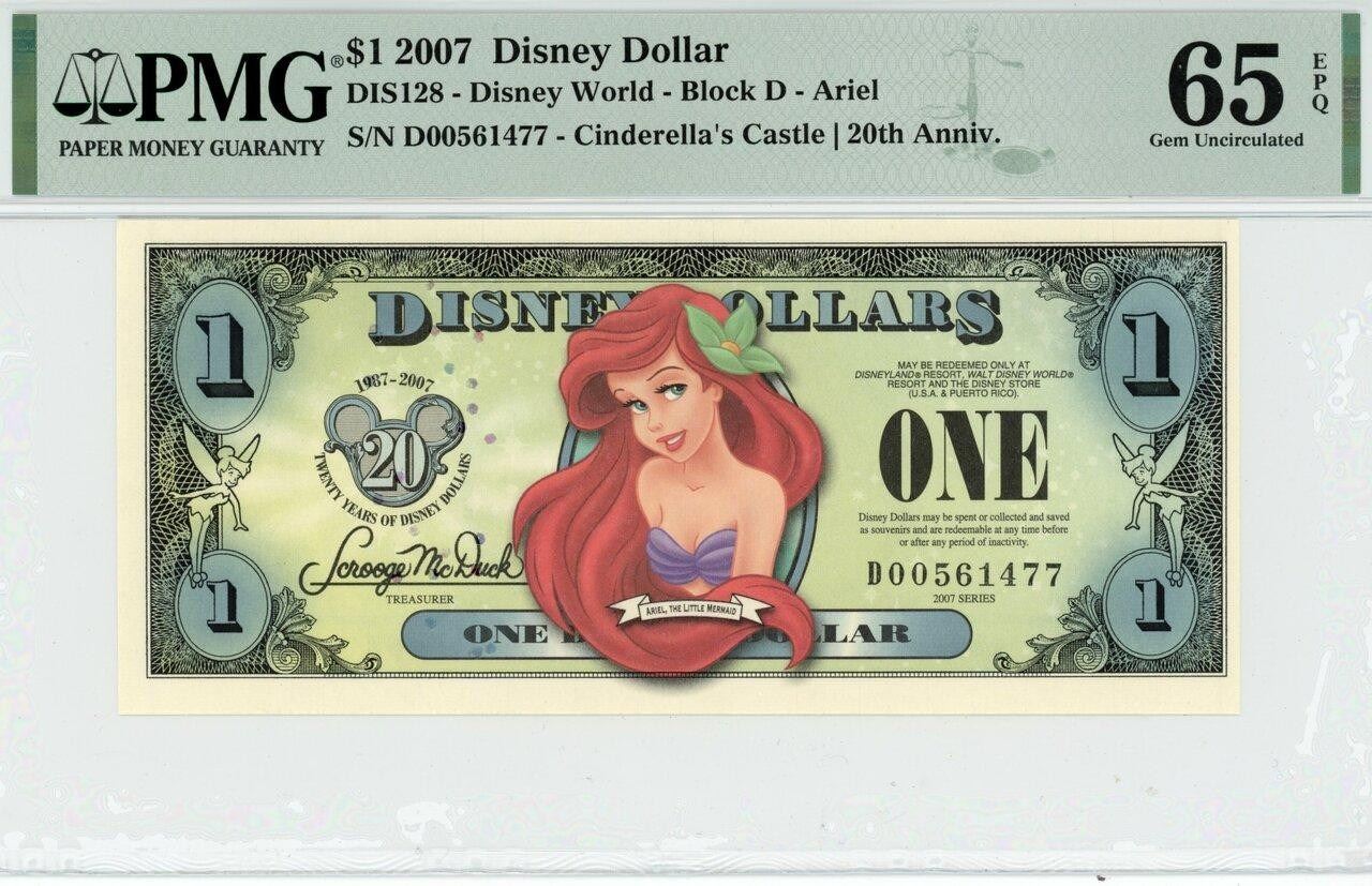 2007 $1 Ariel Disney Dollar PMG 65EPQ