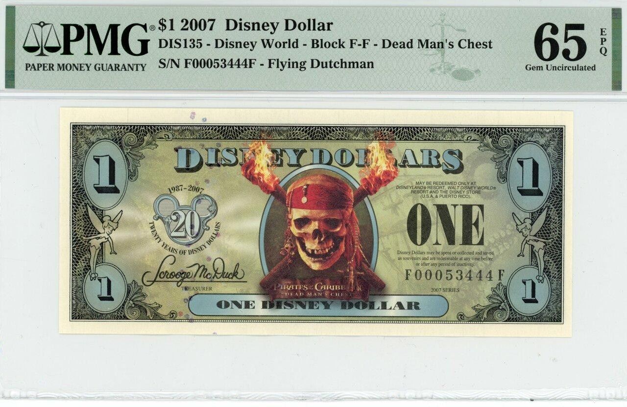 One 2007 $1 Dead Mans Chest Disney Dollar PMG 65EPQ.