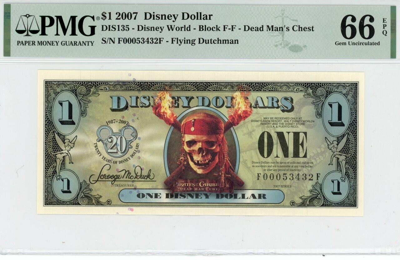 One 2007 $1 Dead Mans Chest Disney Dollar PMG 66EPQ.