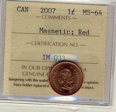 2007 1¢ Magnetic ICCS MS64RD.