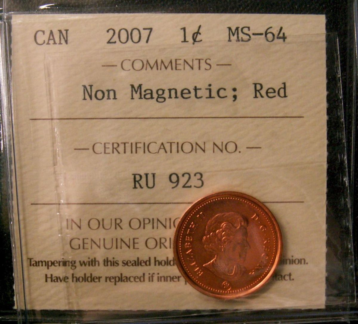 2007 1¢ Non-Magnetic ICCS MS64RD.