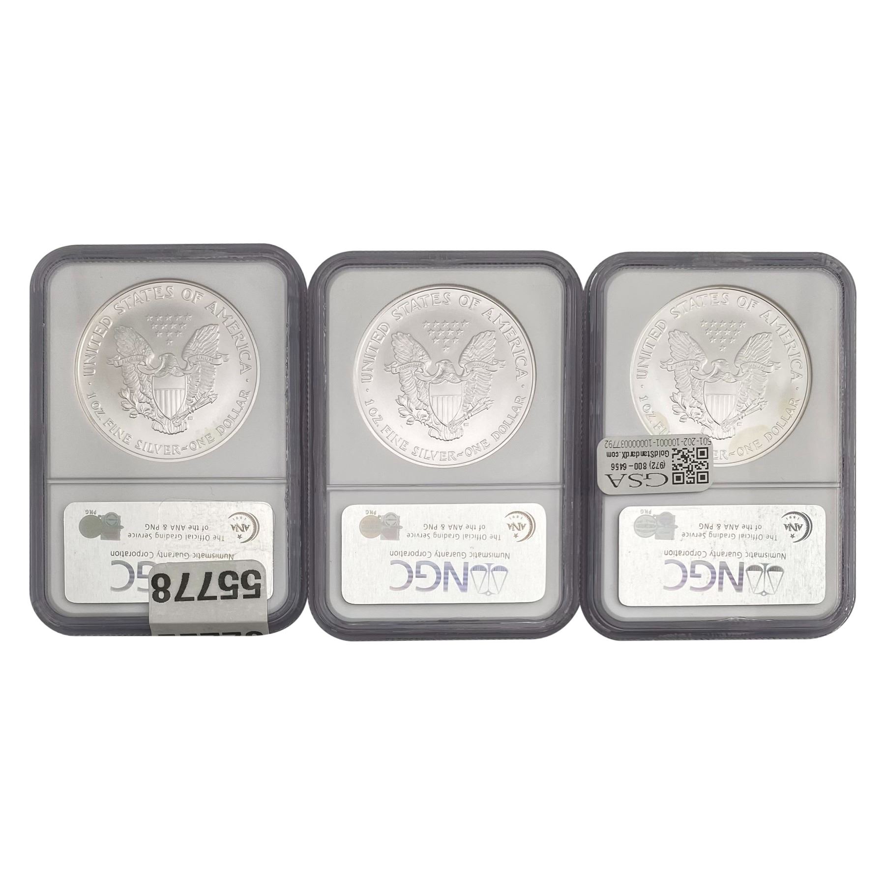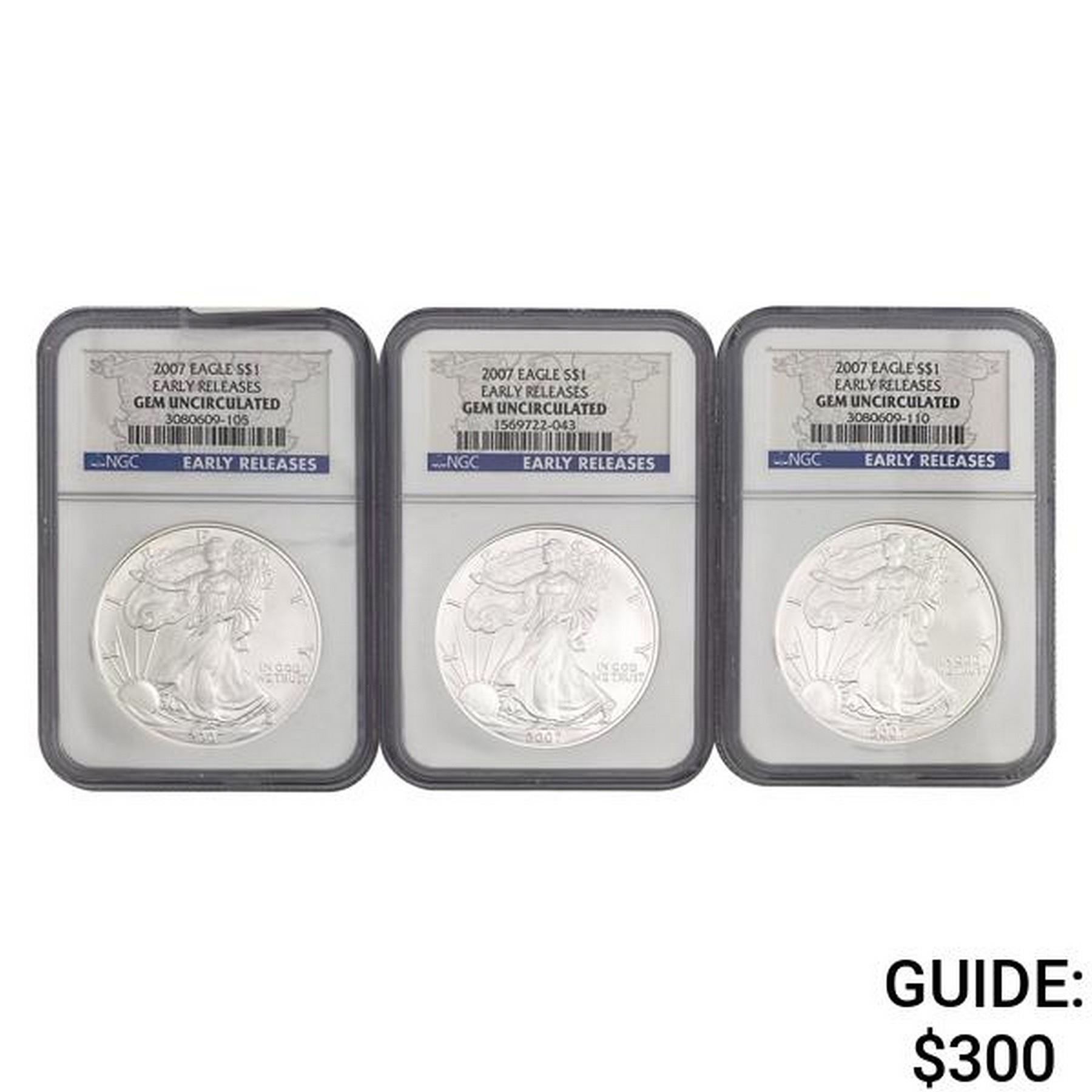 2007 $1 Silver Eagle NGC Gem Unc 3 Coins