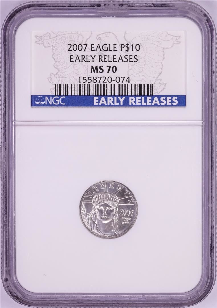 One 2007 $10 Platinum American Eagle Coin NGC MS70 Early Releases. NGC Certified.