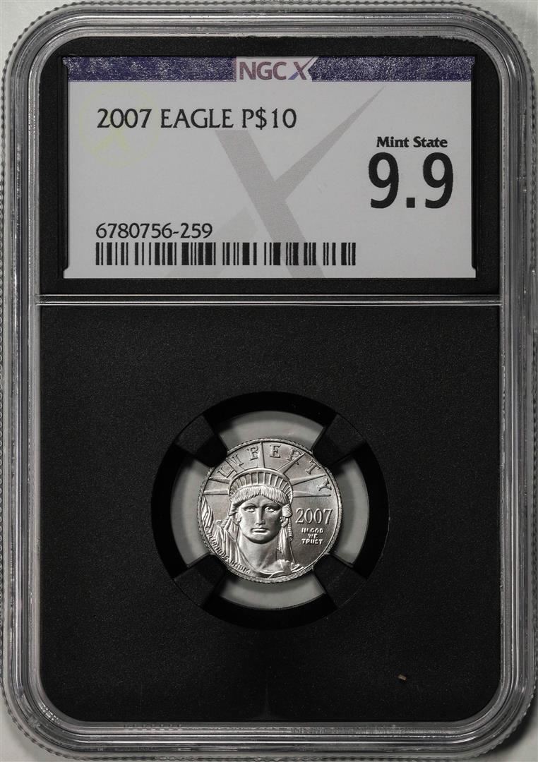 One 2007 $10 Platinum American Eagle Coin NGCX Mint State 9.9. NGCX Certified.