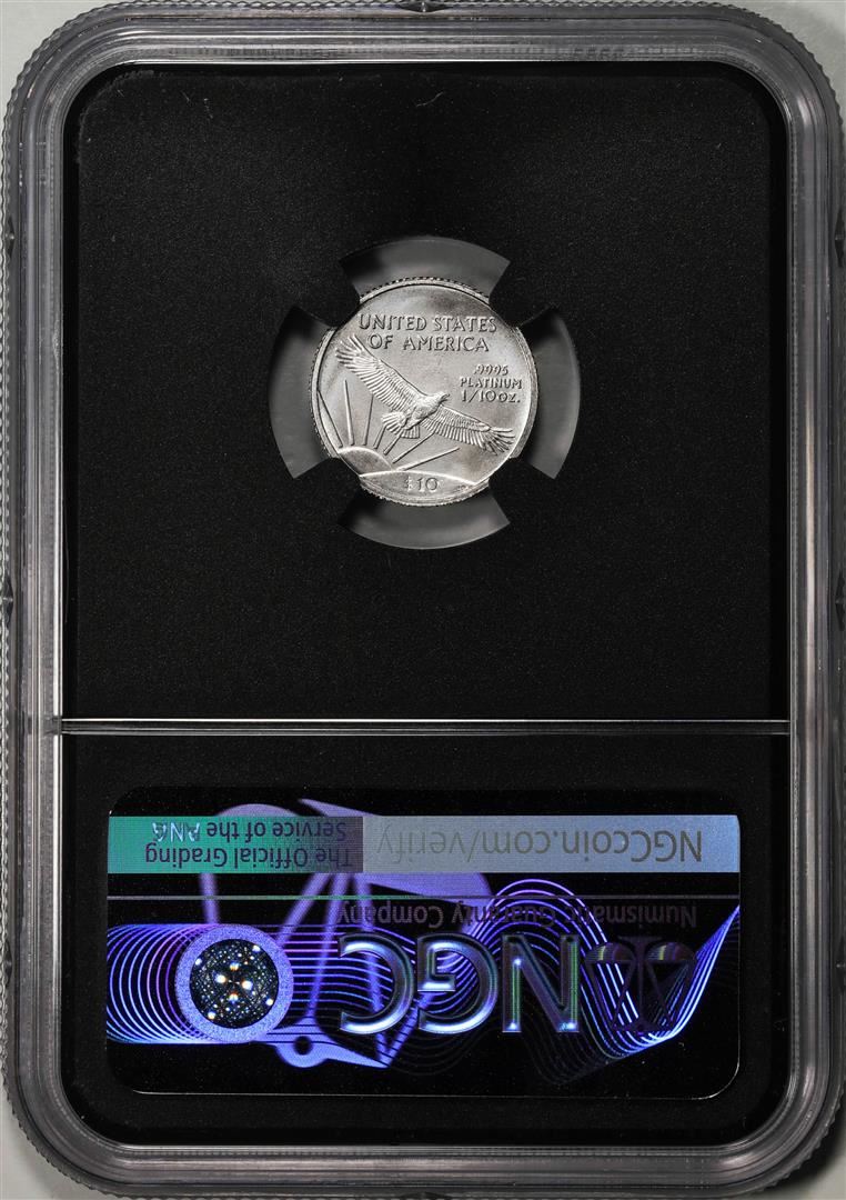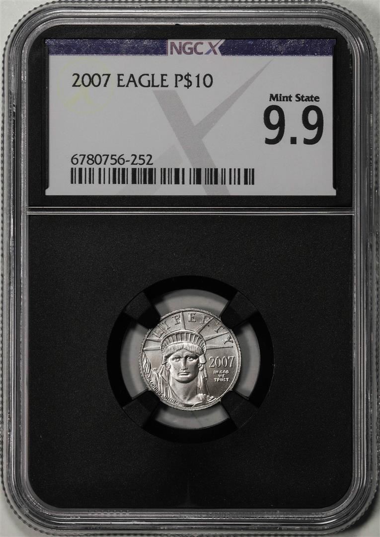 One 2007 $10 Platinum American Eagle Coin NGCX Mint State 9.9. NGCX Certified.