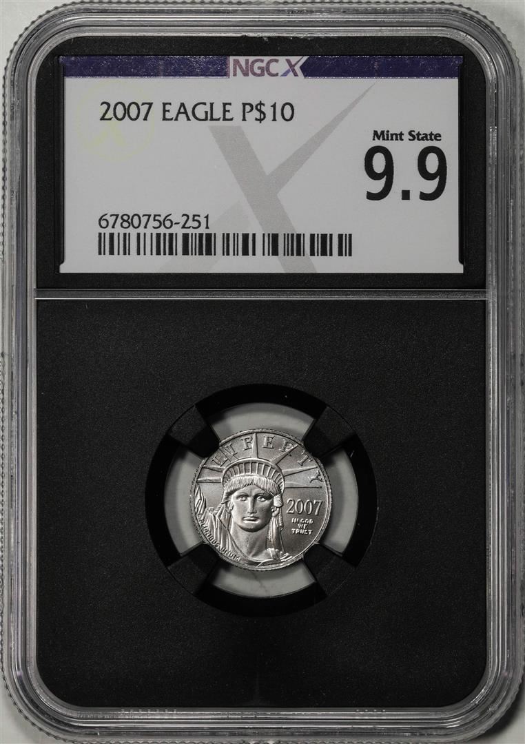 One 2007 $10 Platinum American Eagle Coin NGCX Mint State 9.9. NGCX Certified.