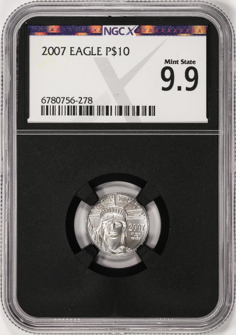 One 2007 $10 Platinum American Eagle Coin NGCX Mint State 9.9. NGCX Certified.