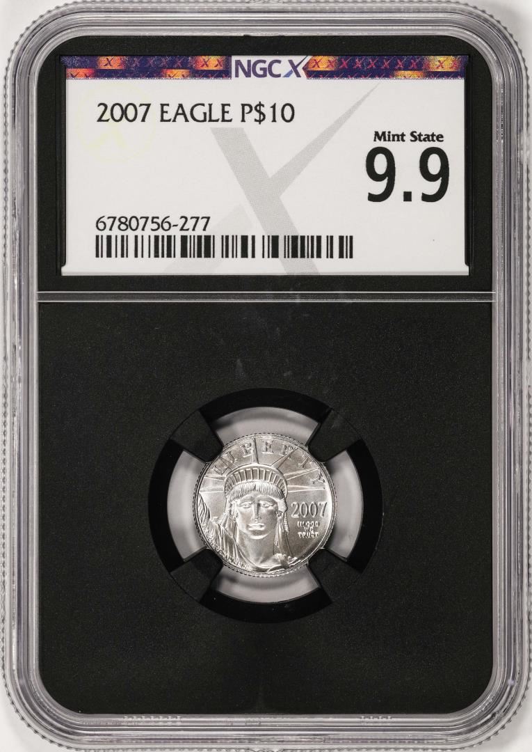 One 2007 $10 Platinum American Eagle Coin NGCX Mint State 9.9. NGCX Certified.