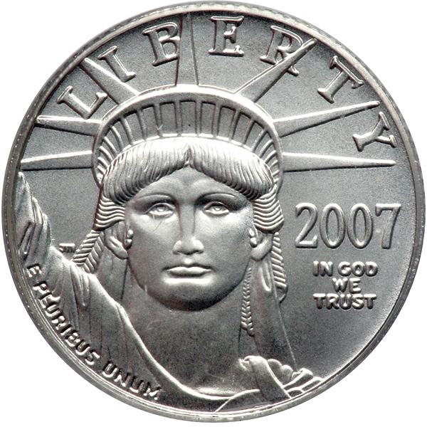 2007 $10 Statue of Liberty. PCGS graded MS-70. 1/10th oz. Platinum coin. A perfect example. Only 113 graded this high at PCGS (PCGS # 146922) .