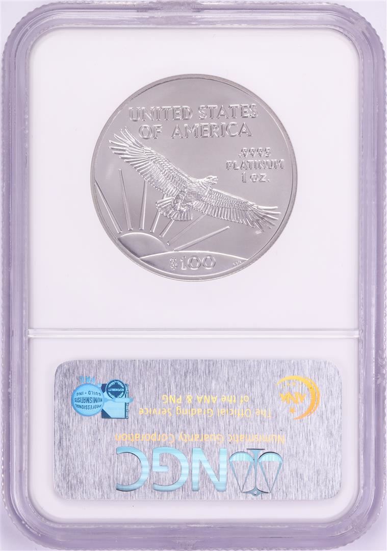 One 2007 $100 Platinum American Eagle Coin NGC MS70 Early Releases. NGC Certified.