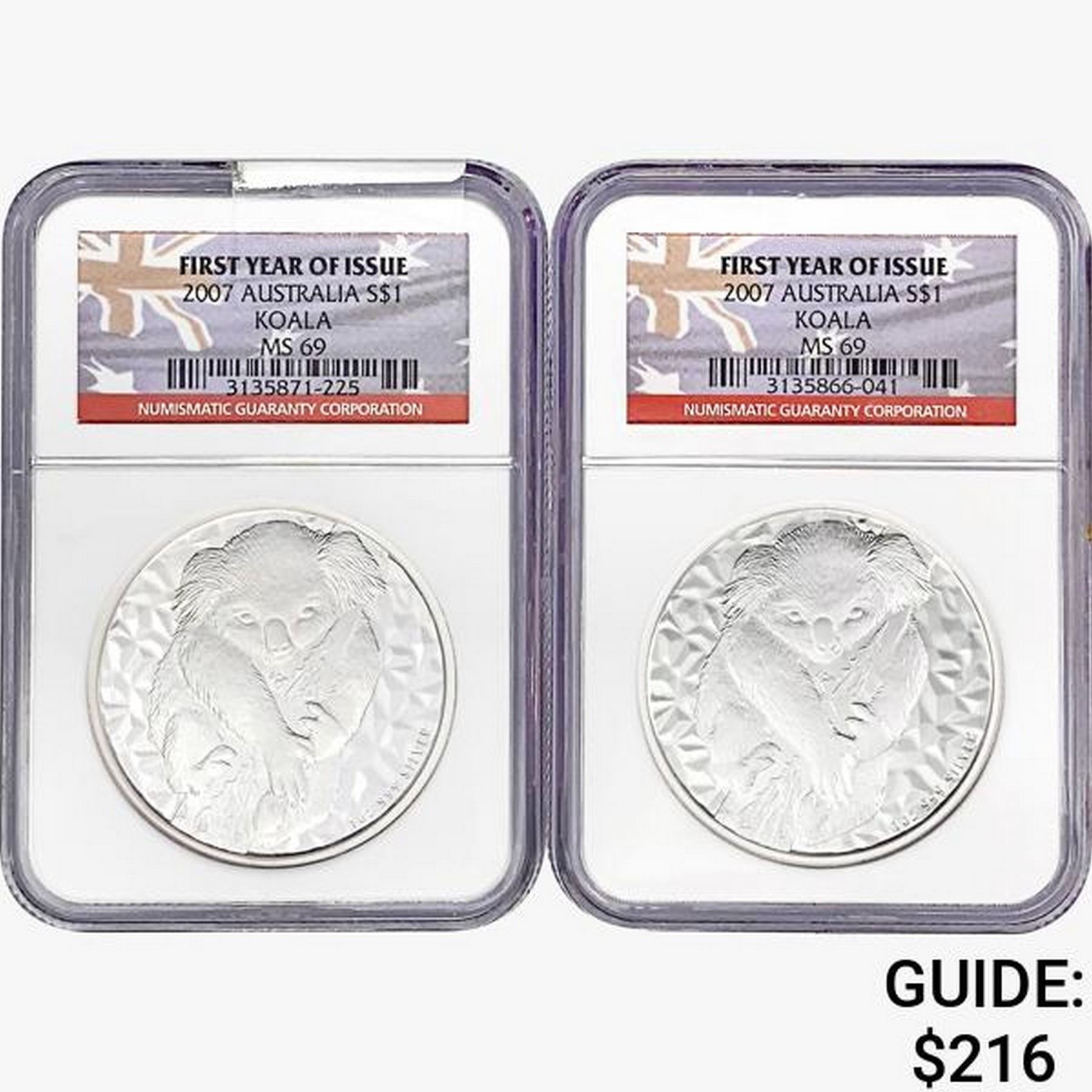 2007 [2] 1oz. SILV. Australia Koala $1 NGC MS69 FY