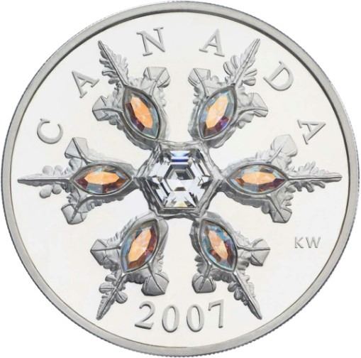 2007 $20 Iridescent Crystal Snowflake - Sterling Silver Coin.