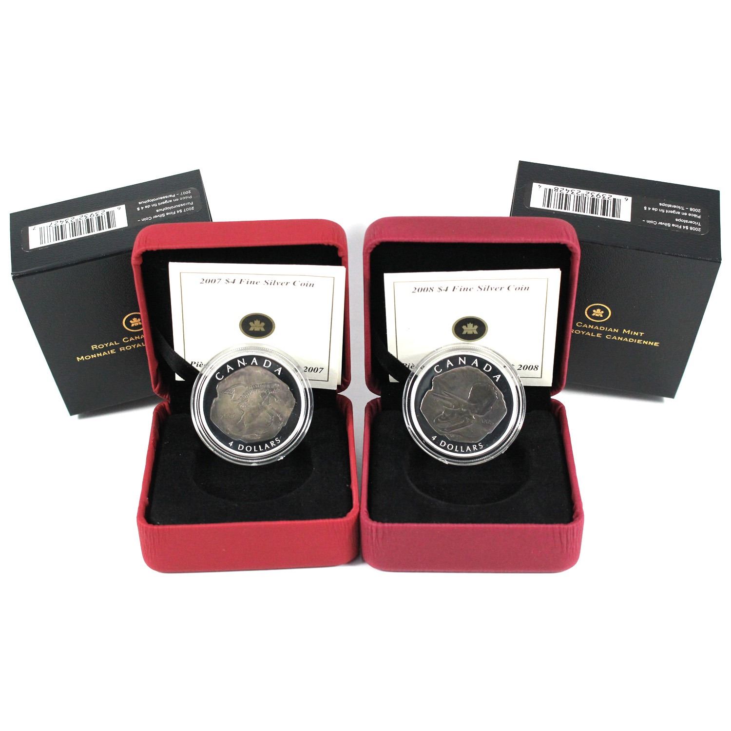 2007 & 2008 Canada $4 Dinosaur Collection - 2007 Parasaurolophus & 2008 Triceratops Fine Silver Coins. 2pcs (TAX Exempt)