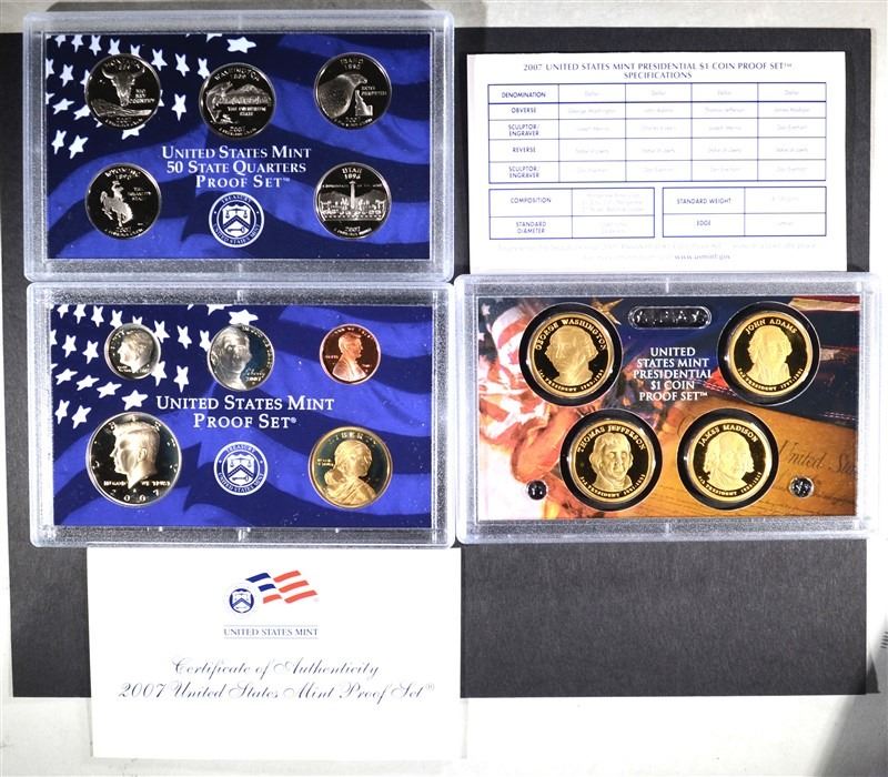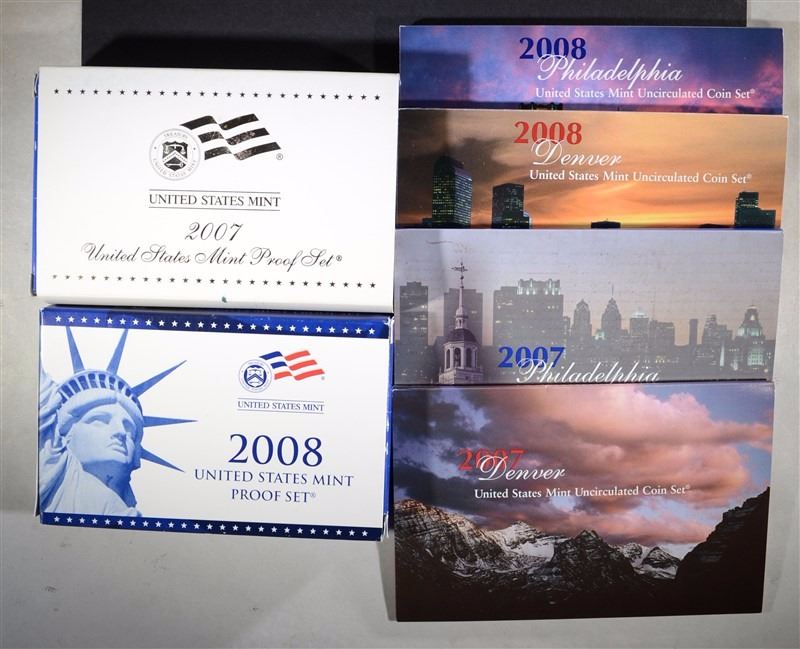 2007 & 2008 Proof & Mint Sets. In Original Packaging. ESTIMATE $100 - $125.