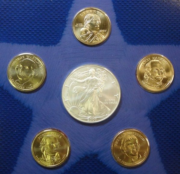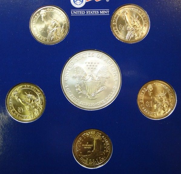 EA. SET CONTAINS SILVER EAGLE, PRES. & SACAGAWEA DOLLAR