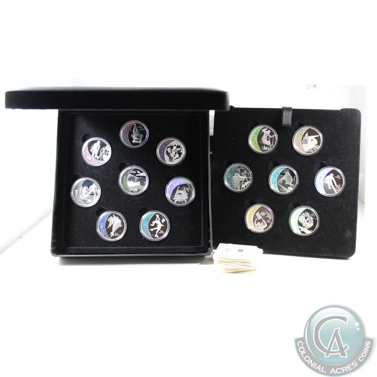 2007-2010 Vancouver $25 Olympic 15-coin Sterling Silver Set. Coins come encapsulated with COAs in original clamshell case and protective sleeve.