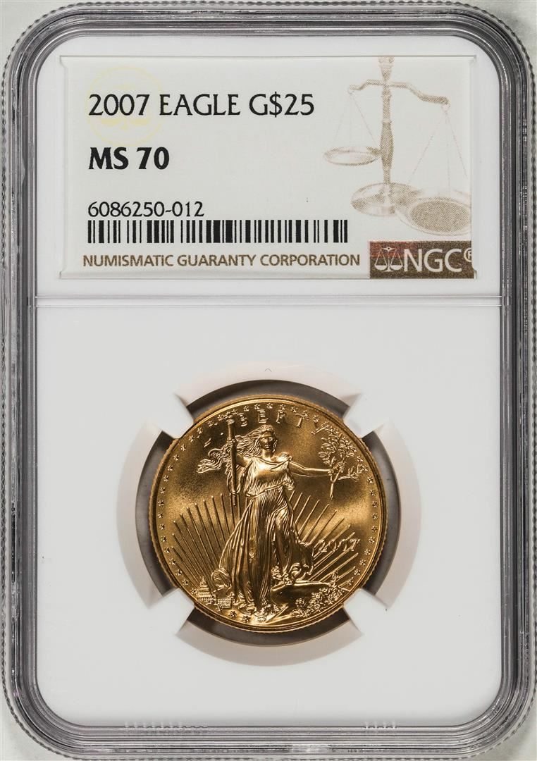 One 2007 $25 American Gold Eagle Coin NGC MS70. NGC Certified.