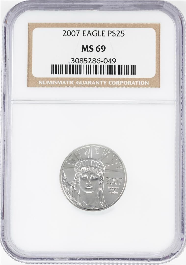 One 2007 $25 American Platinum Eagle Coin NGC MS69. NGC Certified.