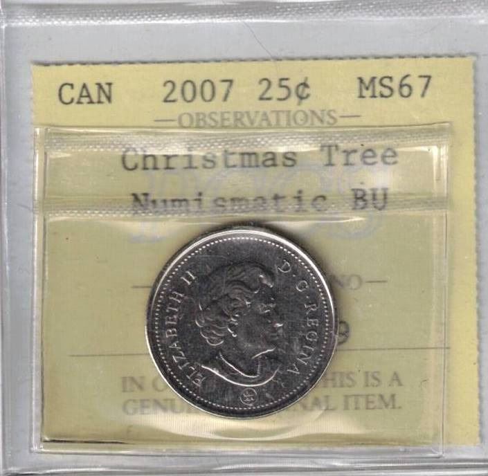 2007 25¢ Canada Christmas Tree; NBU MS-67 PCCS (Professional Coin Certification System)