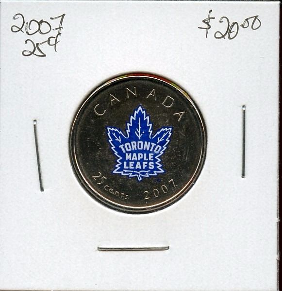 2007 25¢, Toronto Maple Leafs logo commemorative coin, uncirculated.
