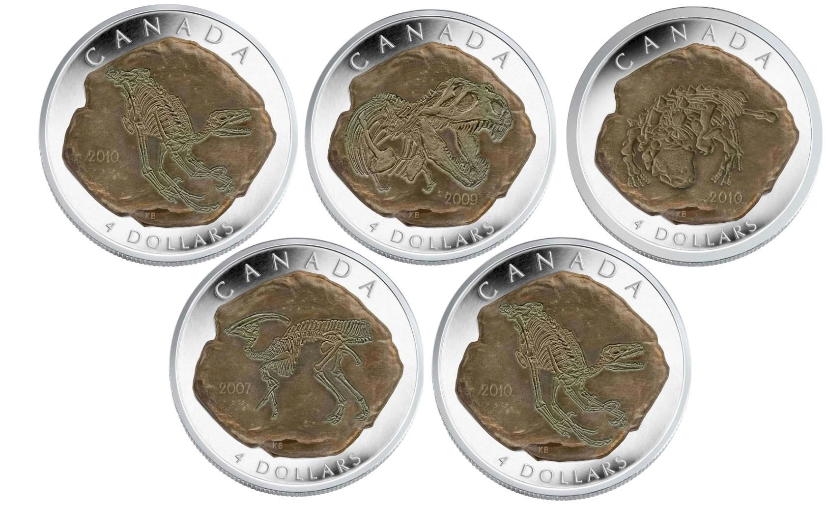 2007 $4 Dinosaur Collection: Parasaurolophus, Dromaeosaurus, 2009 $4 Dinosaur Collection: Tyrannosaurus Rex, 2010 $4 Dinosaur Co