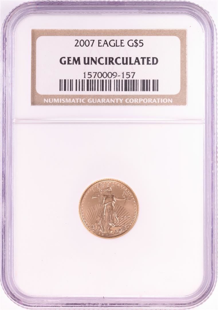 One 2007 $5 American Gold Eagle Coin NGC Gem Uncirculated. NGC Certified.