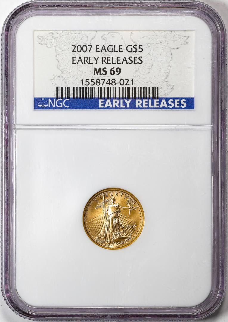 One 2007 $5 American Gold Eagle Coin NGC MS69 Early Releases. NGC Certified.