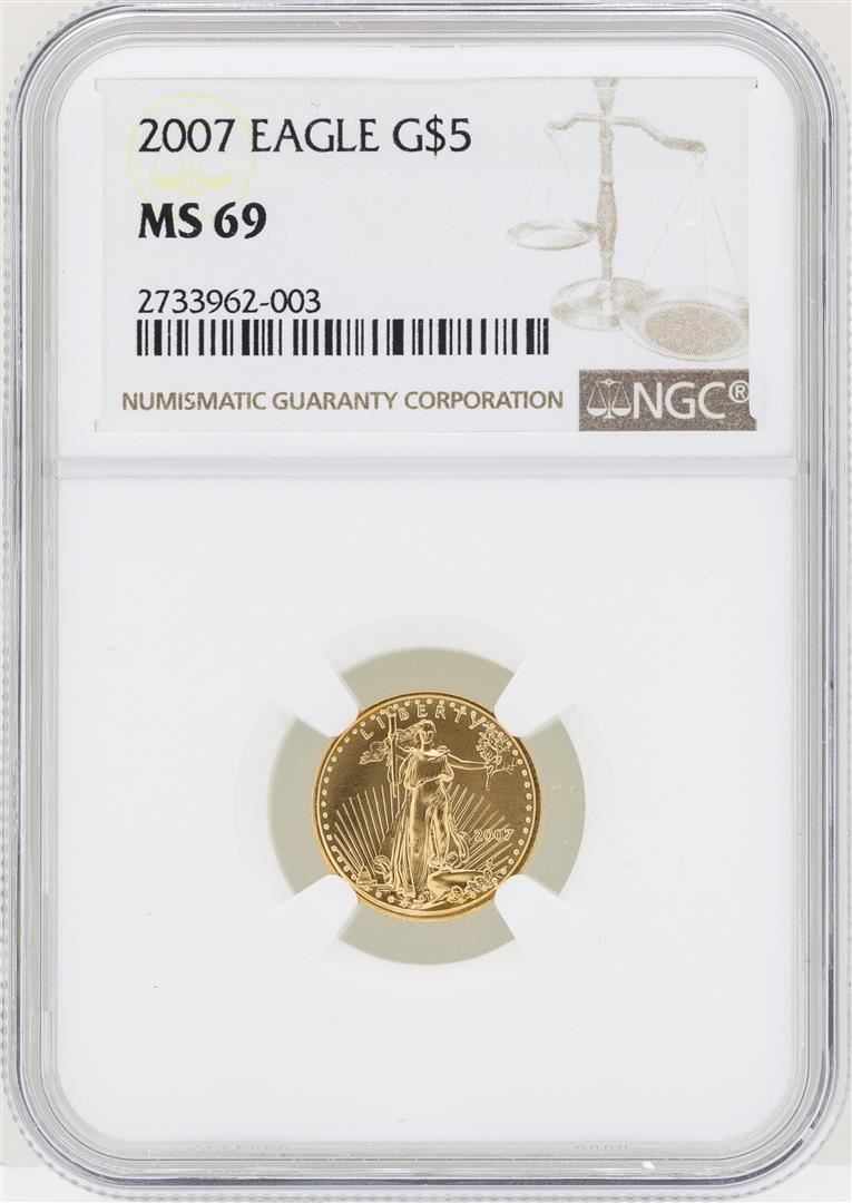 One 2007 $5 American Gold Eagle Coin NGC MS69. NGC Certified.