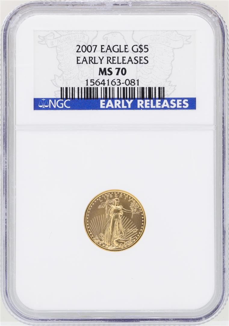 One 2007 $5 American Gold Eagle Coin NGC MS70 Early Releases. NGC Certified.