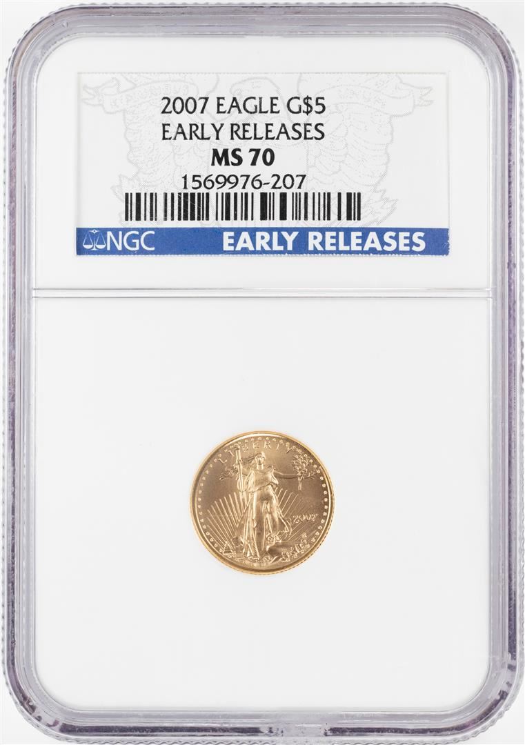 One 2007 $5 American Gold Eagle Coin NGC MS70 Early Releases. NGC Certified.