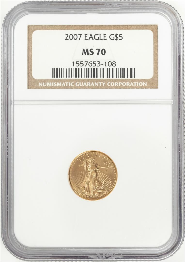 One 2007 $5 American Gold Eagle Coin NGC MS70. NGC Certified.