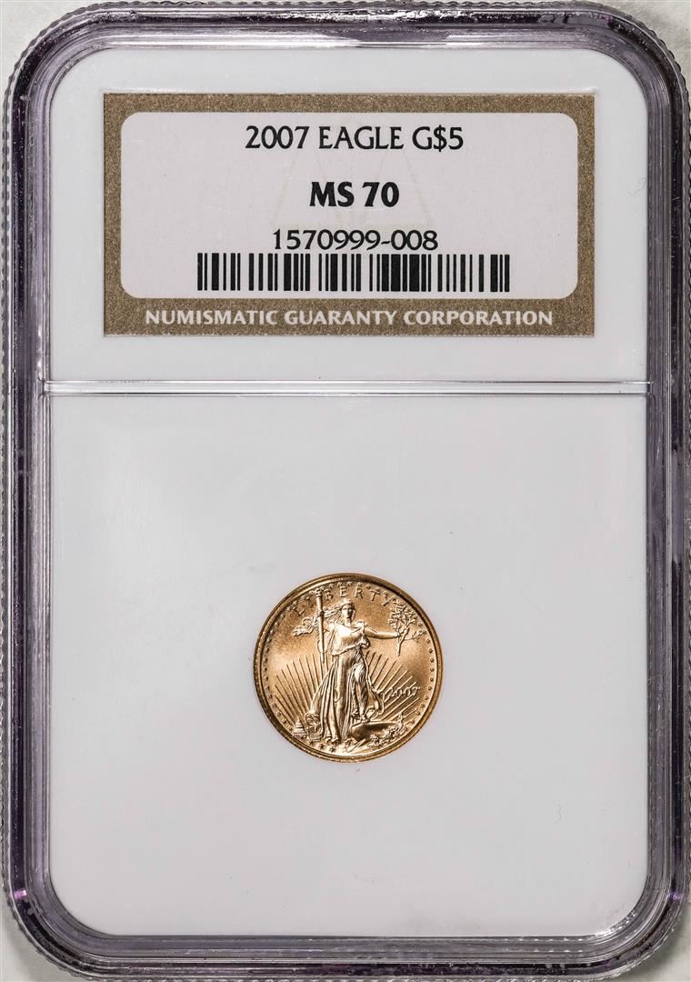 One 2007 $5 American Gold Eagle Coin NGC MS70. NGC Certified.