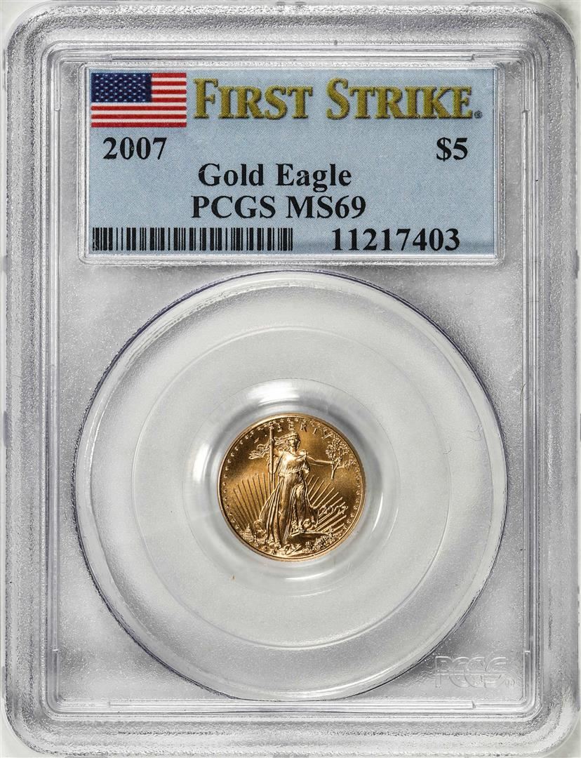 One 2007 $5 American Gold Eagle Coin PCGS MS69 First Strike. PCGS Graded.