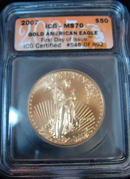 2007 $50.00 Gold Eagle First Day Issue ICG MS70 w/Presentation Box